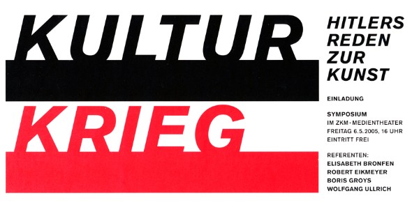 Im Herbst 2004 wurde die Reihe „Kunst Propaganda Dokumente“ mit dem Band „Adolf Hitler, Reden zur Kunst- und Kulturpolitik 1933-1939“ eröffnet. Auf Initiative von Peter Weibel, dem Leiter des Zentrums für Kunst- und Medientechnologie in Karlsruhe, veranstaltete das ZKM am 6. Mai 2005 das Symposium „Kulturkrieg, Hitlers Reden zur Kunst“ mit Elisabeth Bronfen, Robert Eikmeyer, Boris Groys und Wolfgang Ullrich als Referenten.